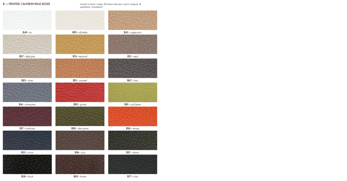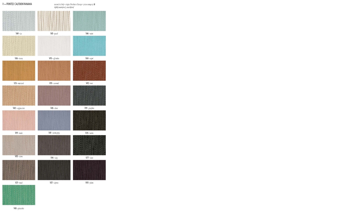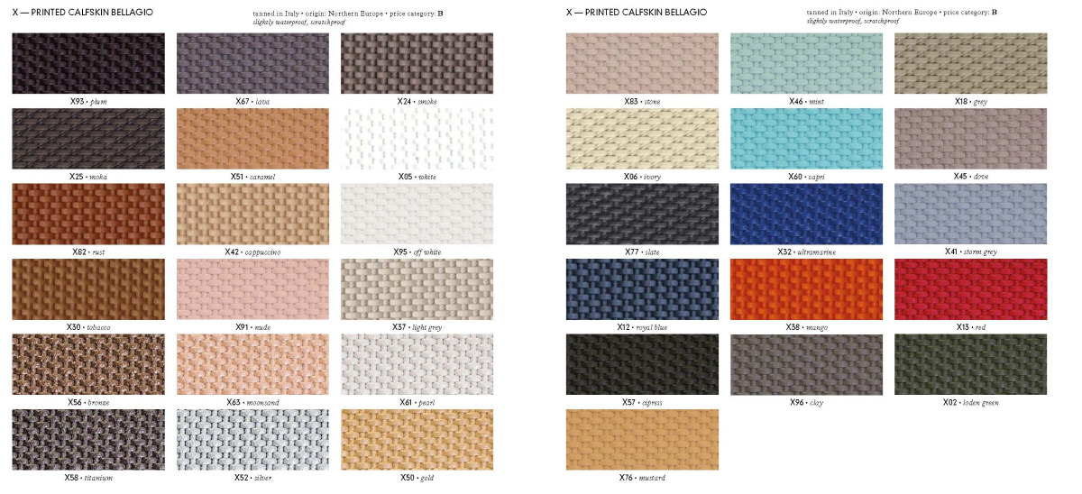 底座包覆飾面可選擇Group A、B、C、F、G、H、P、V、X、Z